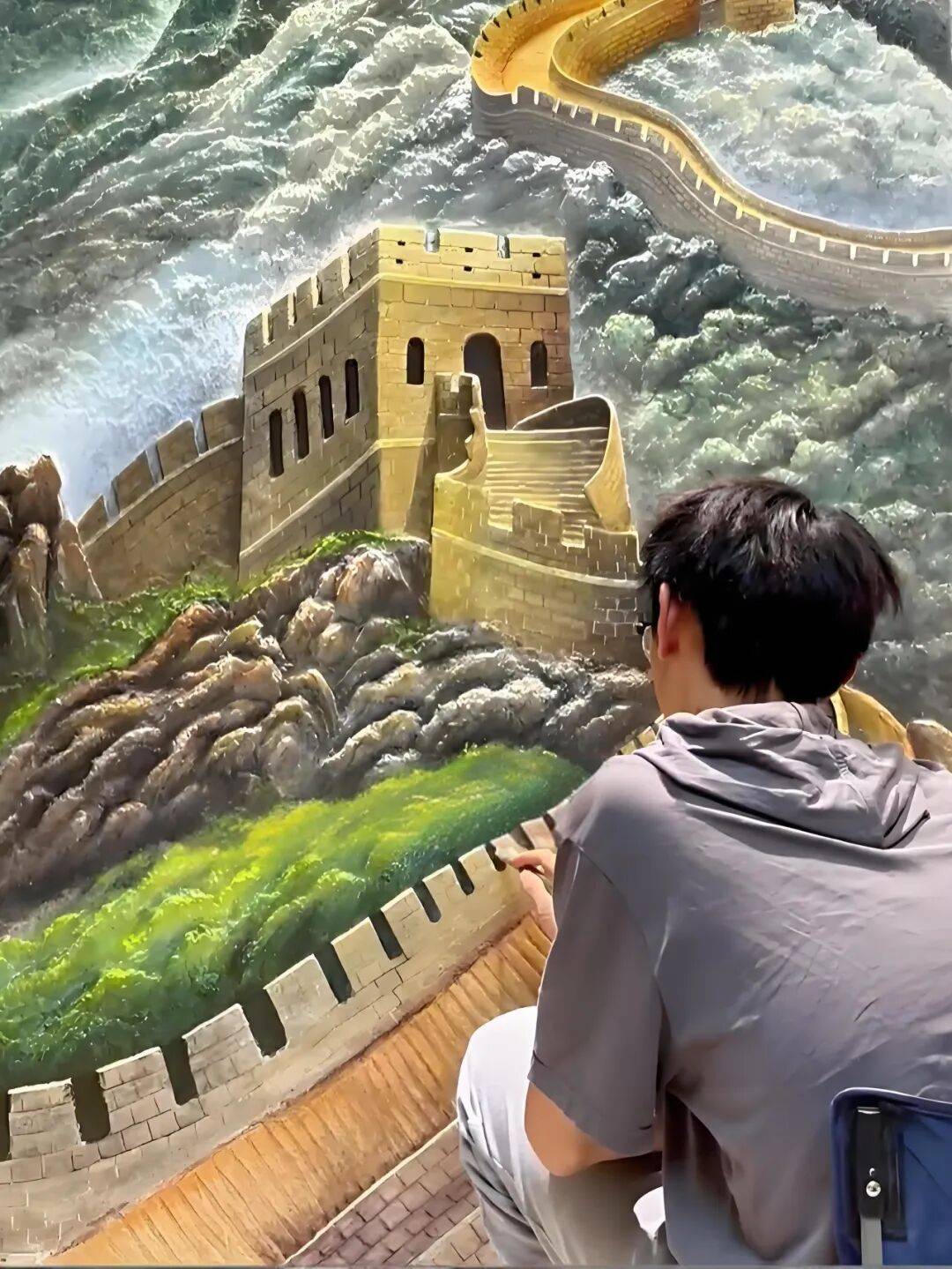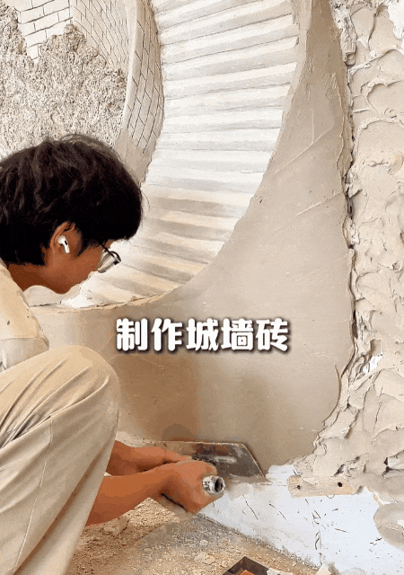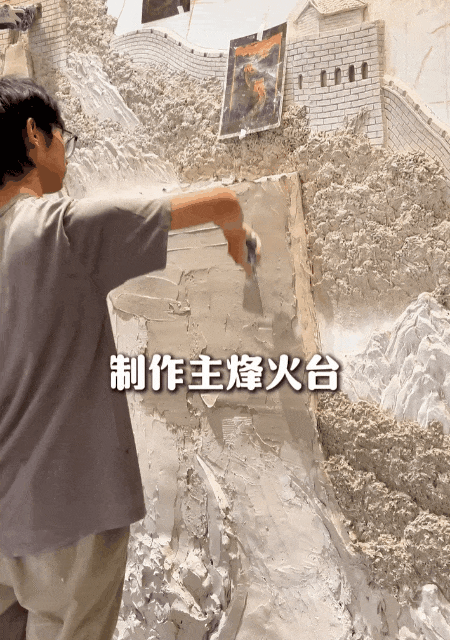 刻出长城的楼梯,一道一道刻出台阶的纹理。