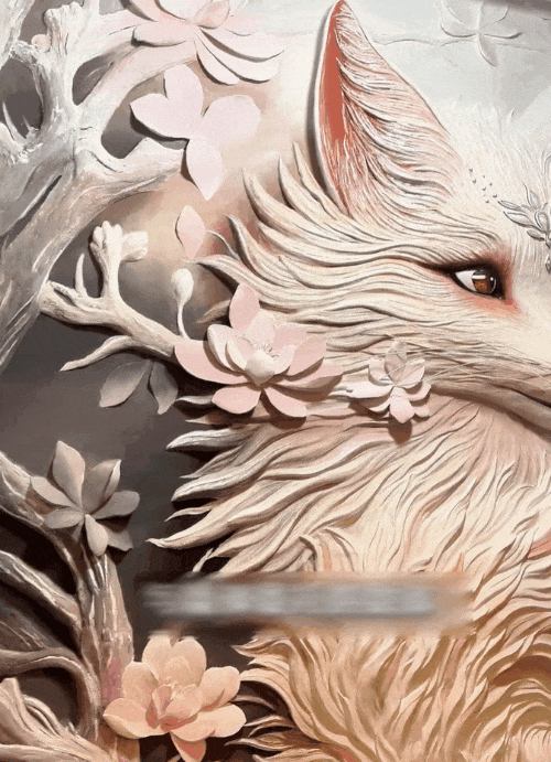 在额头上,雕刻配饰,打磨纹路,衬出灵狐的神秘与高贵。