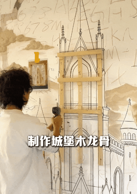 木龙骨往墙上一固定,长城的“骨架”就立住了。