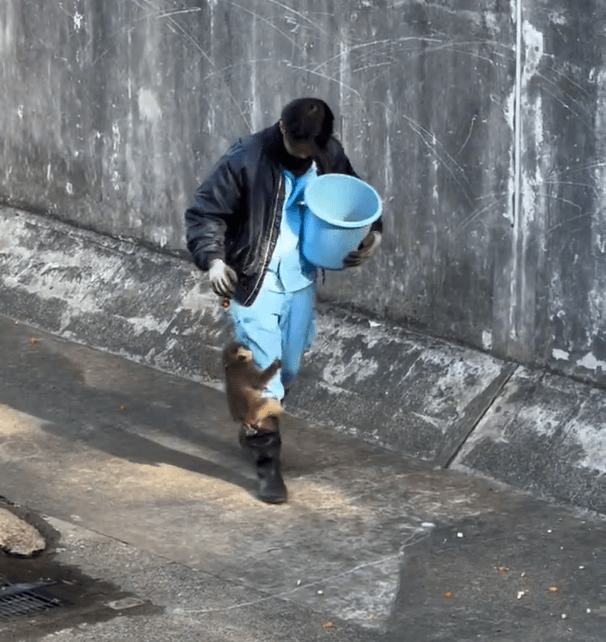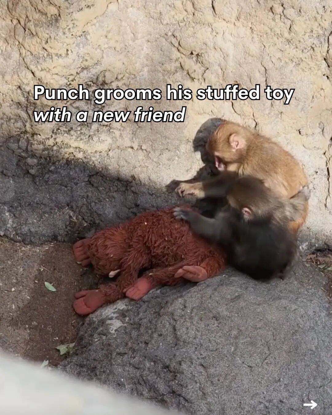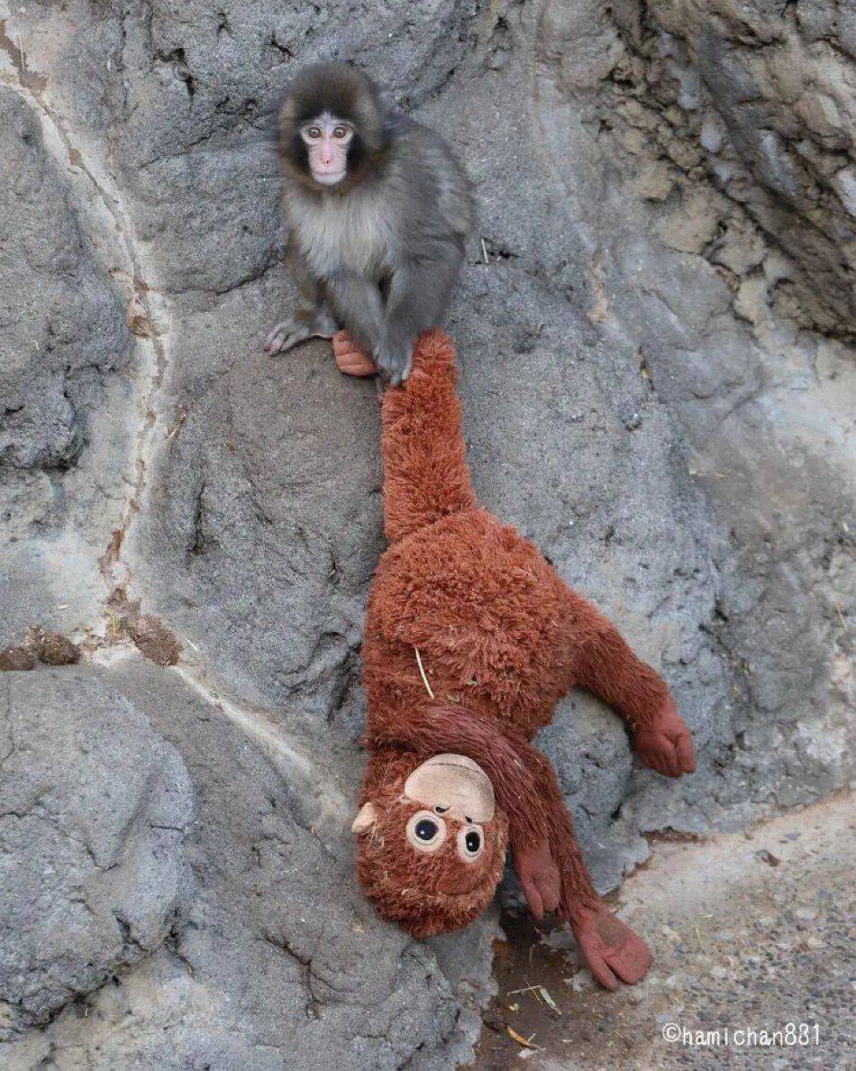 不同的是,Punch总牵着一只橘红色的猩猩玩偶。