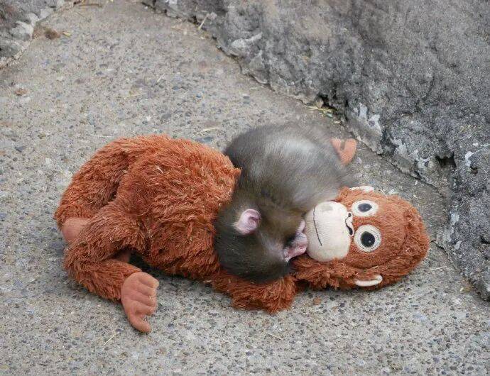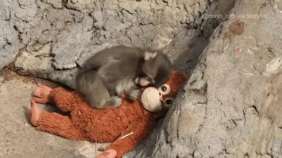 有研究发现,当成年母猴的孩子被强行带走后,她也会拥抱人类给予的玩偶。