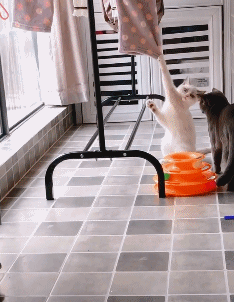 白猫:你干嘛,干嘛,干嘛……黑猫:这还看不出来吗?老妹