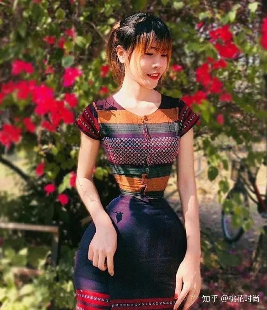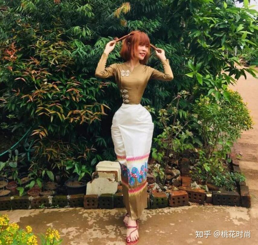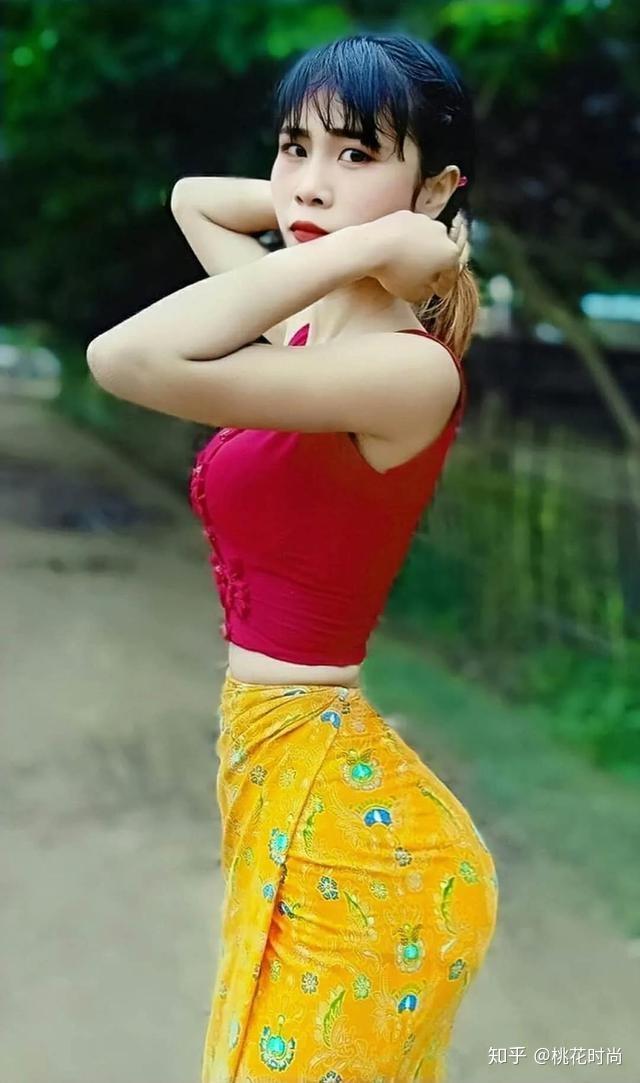 这应该是缅甸的传统服饰,版型和设计,不是咱们关注的重点。单看素莫莫奈的腰肢,似乎已经异于常人了,没有丝毫的细腰美感。