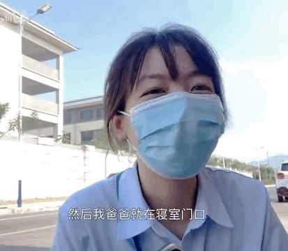 而爸爸站在宿舍门口,不舍地望着芳芳。