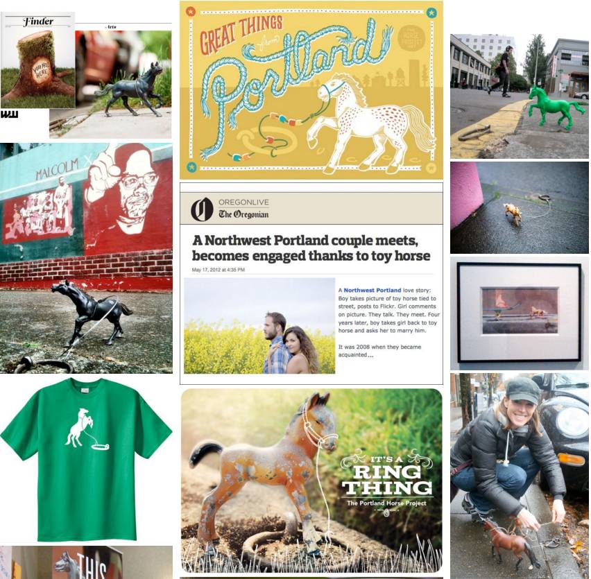 在波特兰的路边,巴士站和公园,如果你留意的话,你会看到这个1900's 年代的拴马车的吊环,演变成了一个 Portland Horse Project,现在都绑着各种可爱的小马。