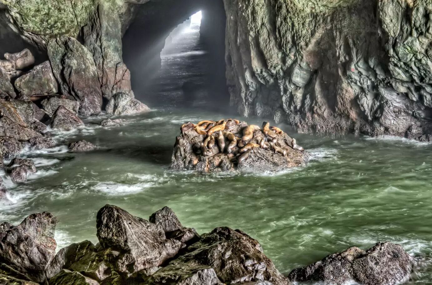 在俄勒冈南部的佛罗伦萨有一个美国最大的海狮洞 Sea Lion Caves,住着许许多多的海狮,有兴趣的朋友不妨去看看。