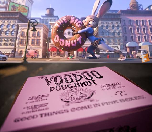 其中一幕,北极鼩小姐拎着 Targoat 的袋子在过马路时差点被甜甜圈撞到时,小编立马就联想到了 Voodoo Doughnut 啦...小编本人是不喜欢这家的甜甜圈(爱吃甜甜圈的猎豹可能会很爱),但却不能否认它的受欢迎程度。相信你在机场肯定看到有人手提这个粉色的盒子吧。真心佩服这个品牌的威力,让人觉得你来波特兰,还非要提着一个粉色盒子才算到此一游。