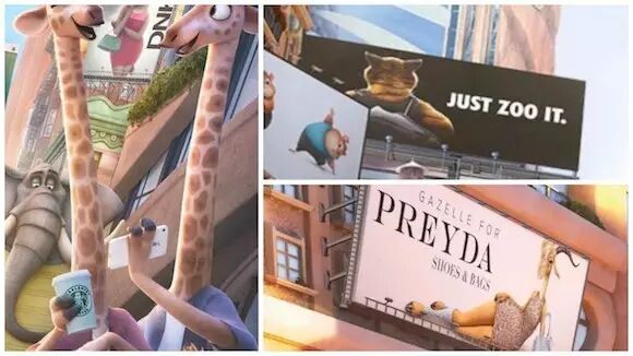 广告植入早已遍布在真人电影,而《疯狂动物城》植入的却是进行了二次加工,跟电影能够融合一体的品牌植入。《疯狂动物城》这个世界跟我们的世界很像,动物们也用智能手机,喝咖啡,买名牌包包。