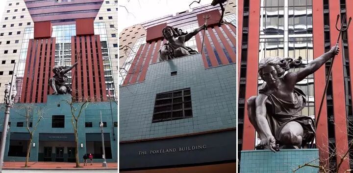 波特兰迪亚 (Portlandia)雕像,是位于波特兰大楼门前一尊高11米的手持三叉戟的女性半跪像。她是美国第二大锻铜雕像,从体积到重量都仅次于纽约的自由女神。1985年,当雕像乘坐驳船到达波特兰的时候,曾引起万人空巷前去一睹其风采。