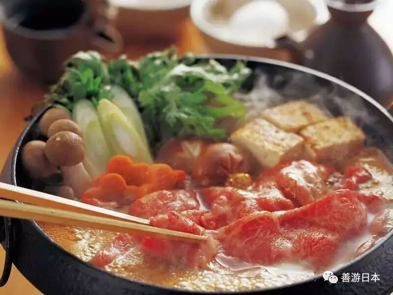 寿喜锅也是最近在中国很流行的一个火锅品种。选择上好的牛肉在褐红色的锅底中涮烫,带着汤头浓郁鲜甜的滋味蘸一下打散的蛋黄就可以一口吃下。