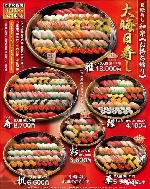 每到日本12月中下旬,各个寿司店门口都会贴出这样的海报,提醒客人们可以提早开始预约过年用的寿司礼盒。