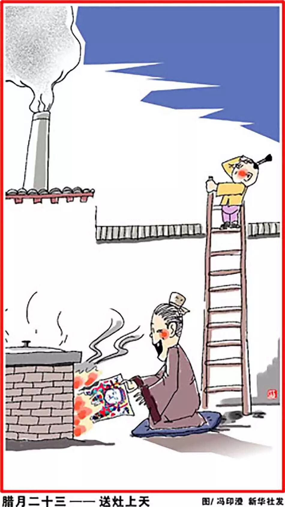 腊月廿三,糖瓜粘,灶君老爷要上天。腊月廿三,相传灶王爷每年这天要上天向玉皇大帝禀报一家善恶,到除夕夜返回,奉旨赏善惩恶,或赐福或降灾。所以家家要打扫得干干净净,供上灶糖,让灶王爷多说些好话。