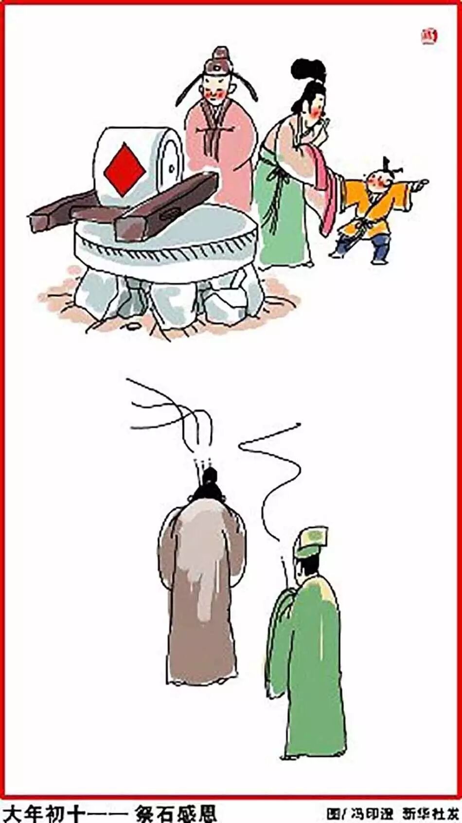 正月初十,祭石感恩。正月初十是石头的生日,这一天不能动磨、碾等石制工具,甚至要祭祀石头。正月初九夜里,人们把一个瓦罐冻结在一块平滑的大石头上,初十早晨,用绳系住瓦罐的鼻子,由十个小伙子轮流抬着走,石头不落地预示当年丰收。