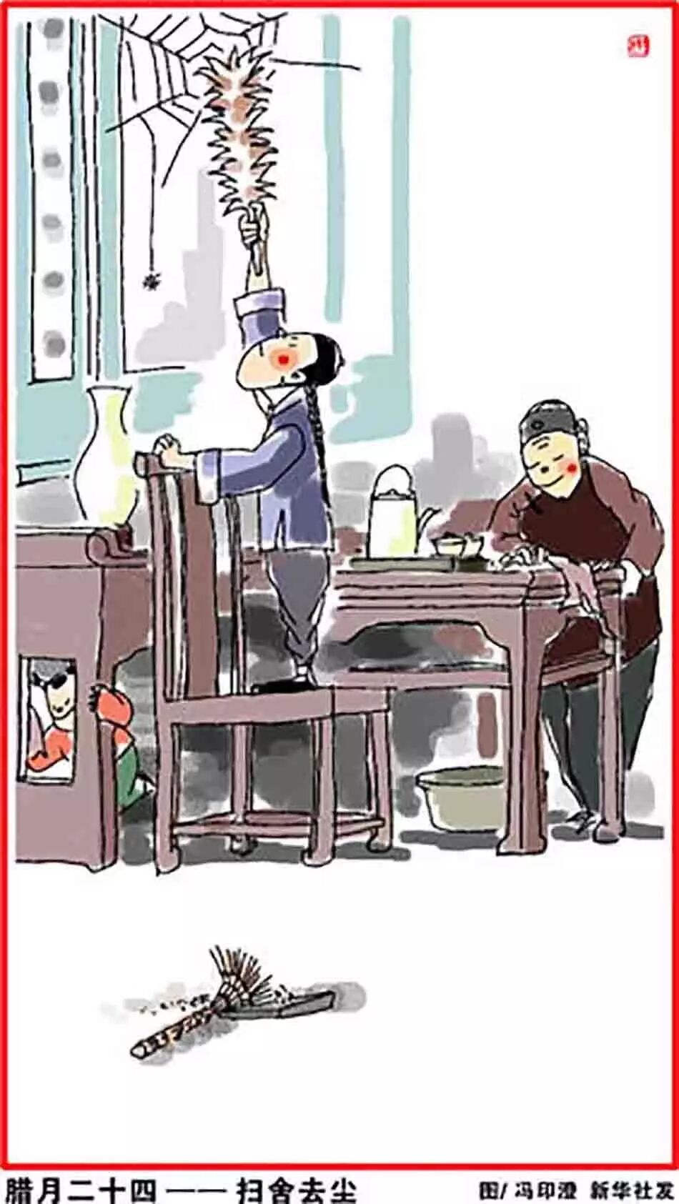 腊月廿四,掸尘扫房子。扫尘就是年终大扫除,北方称“扫房”,南方叫“掸尘”。 腊月廿四家家户户都要打扫环境,清洗各种器具,拆洗被褥窗帘,洒扫六闾庭院,掸拂尘垢蛛网,疏浚明渠暗沟。