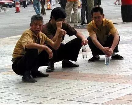 其实在中国人的肢体语言中,下蹲代表着一种舒适、惬意和放松。我们总是契而不舍的追求“站有站相”、“坐有坐相”,而唯独不讲究“蹲相”。因此当你看见一个人蹲着时,他可能正在与全世界的规则对抗!