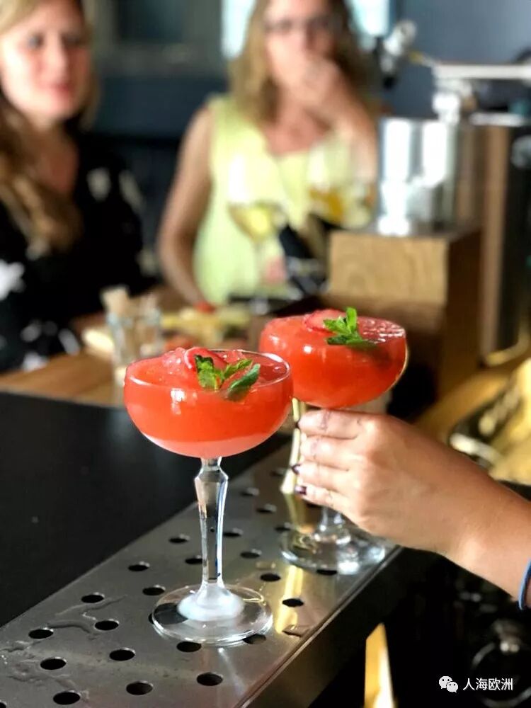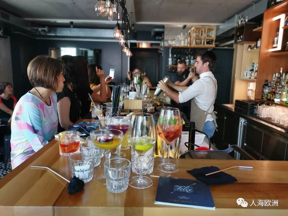 调酒的步骤不难,鸡尾酒的配料和分量搭配千变万化,只是要根据个人的口味。尝多了,就知道有什么样的可能性、自己最喜欢哪一款,也可以自己创造。我们分成了四个小组,分别在酒馆的酒单上挑选不同酒味和配方的鸡尾酒,然后让酒保来为我们去配料和指导。三个小时里配了大概有十种鸡尾酒。每个人拿着吸管,每一杯都品一点,接近五点的时候我们都微醺了