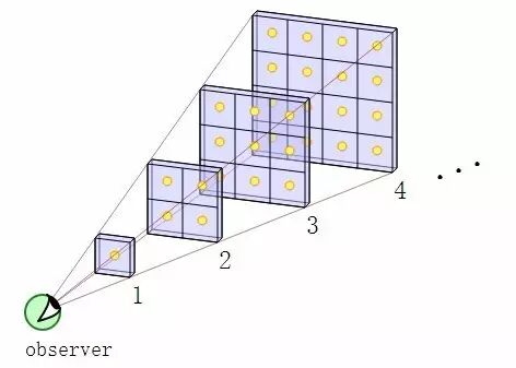 一定数量的星星分布在1,000,000,000 到1,000,000,001 光年厚度的外壳中。如果宇宙在大尺度上是均匀的,那么在第二个壳体中将有四倍数量的星星,它们分布在2,000,000,000到2,000,000,001光年之间的外壳。然而,第二个壳离我们两倍远,所以这里的星星的亮度只有第一个壳中的星星亮度的四分之一。因此,我们从第二壳体接收的总光线与从第一壳体接收的总光线相同。