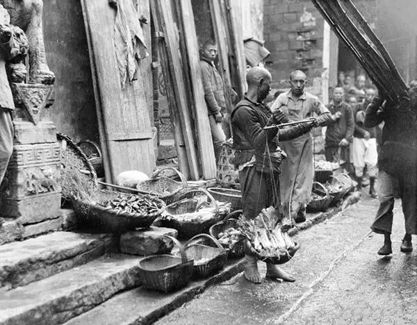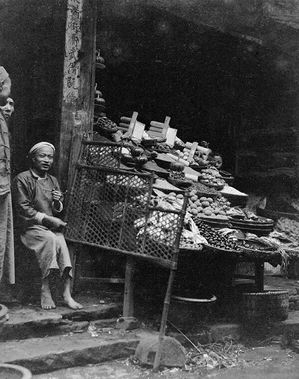 湖北宜昌,街边的菜贩。甘博/摄,约拍于1917-1919年之间。