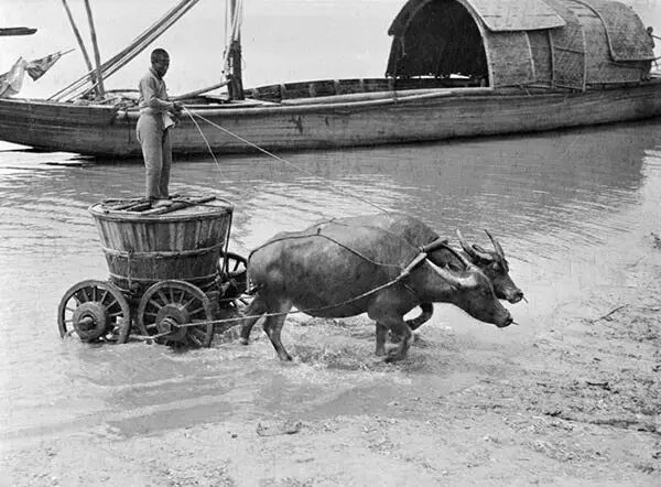 杭州,用牛拉水。甘博/摄,约拍于1917-1919年之间。