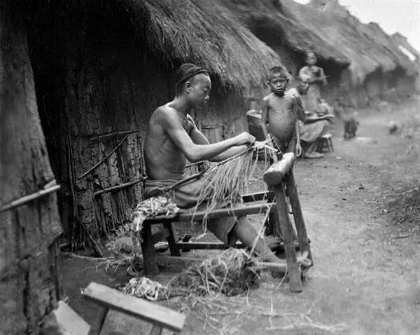 1917年,四川遂宁县,做草鞋。甘博/摄。