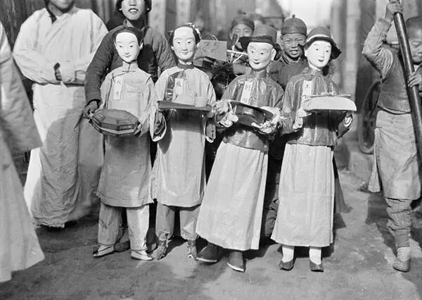 北京,丧葬上的纸人仆人。甘博/摄,约拍于1917-1919年之间。