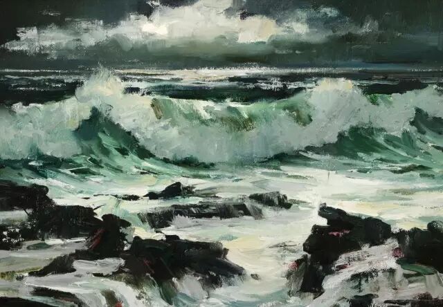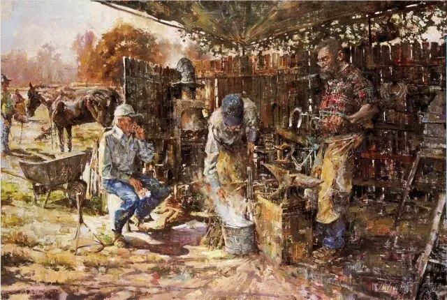 他那刀刻斧劈似的笔触,