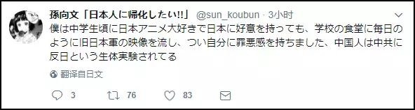 “我上中学的时候,喜欢看日本动漫,结果学校食堂每天都放日本兵的电影,让我产生了罪恶感。中国人都在进行反日的活体实验。”