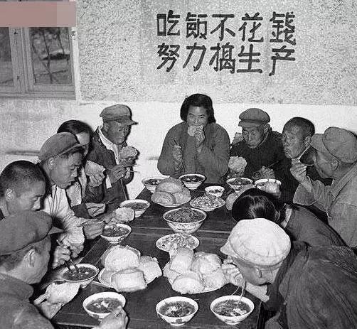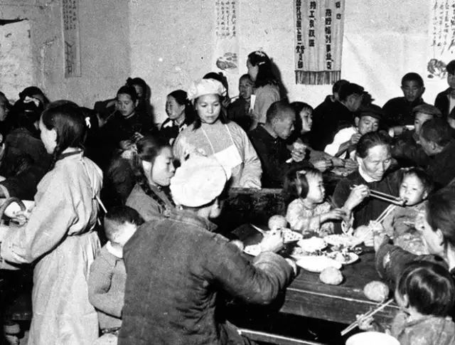 由大队组织大家吃“大锅饭”,不分你我,有饭大家吃