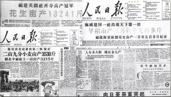 报纸上经常登载:某某公社粮食亩产超万斤、某某公社粮食亩产达14万斤,居全世界之冠