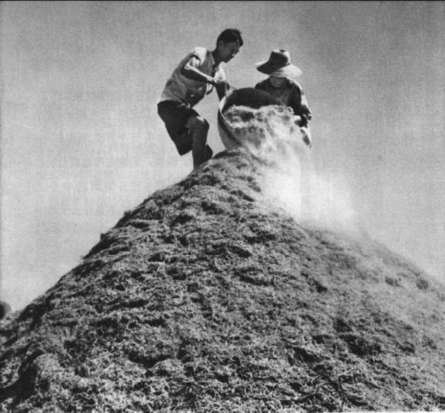 有些公社把全村的食粮都聚集起来展示,还硬说是当天产的食粮