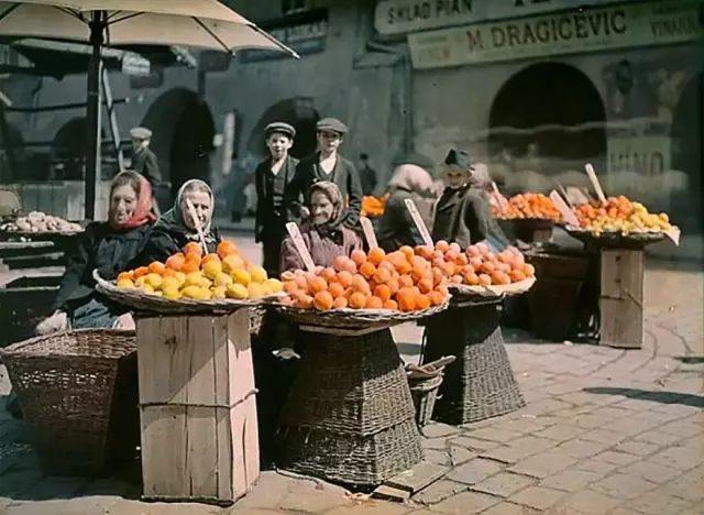 ▲塞尔维亚集市场景 摄于1913年