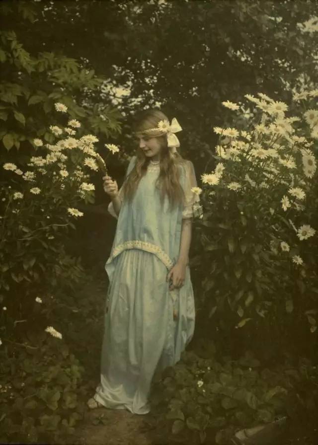 ▲手捧鲜花的少女 摄于1908年