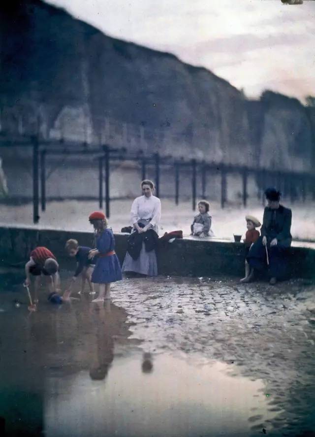 ▲在防浪堤旁的孩子们 摄于1908年