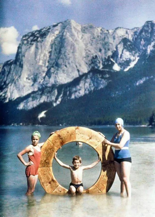 ▲在湖边玩耍的一家人 摄于1925年