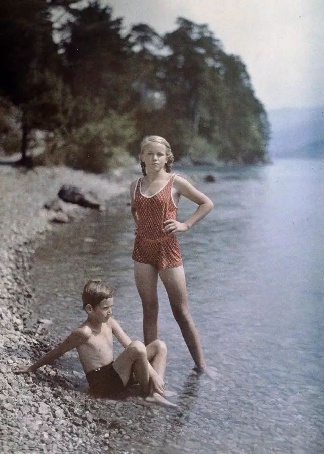 ▲山坡上的男孩和女孩 摄于1925年
