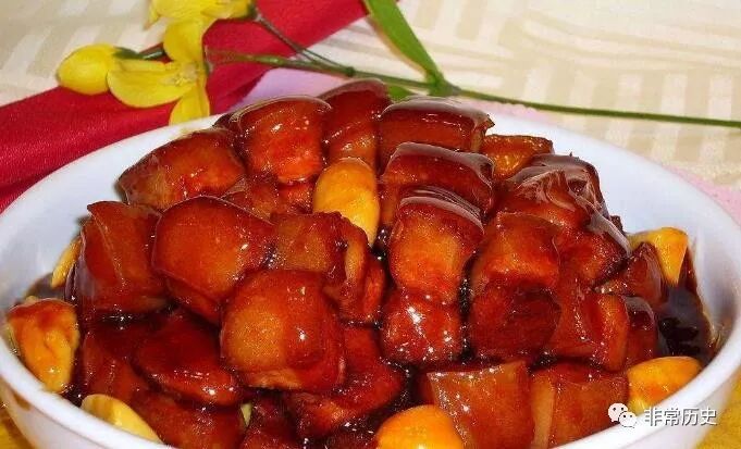 据说1972年尼克松访华时,毛泽东宴请他的头菜就是红烧肉,接着是湖南名菜“东安子鸡”等。