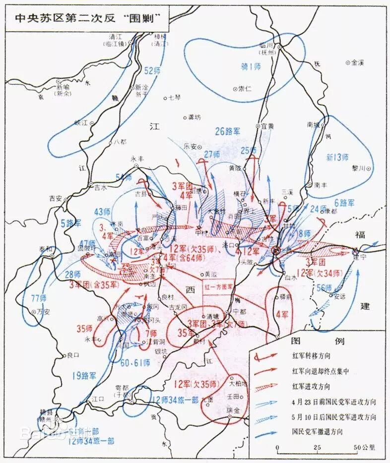 第二次,红军又在富田附近的东固设伏,包围歼灭了公秉藩师,然后向东一路扫过去。