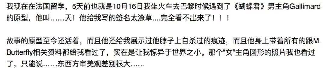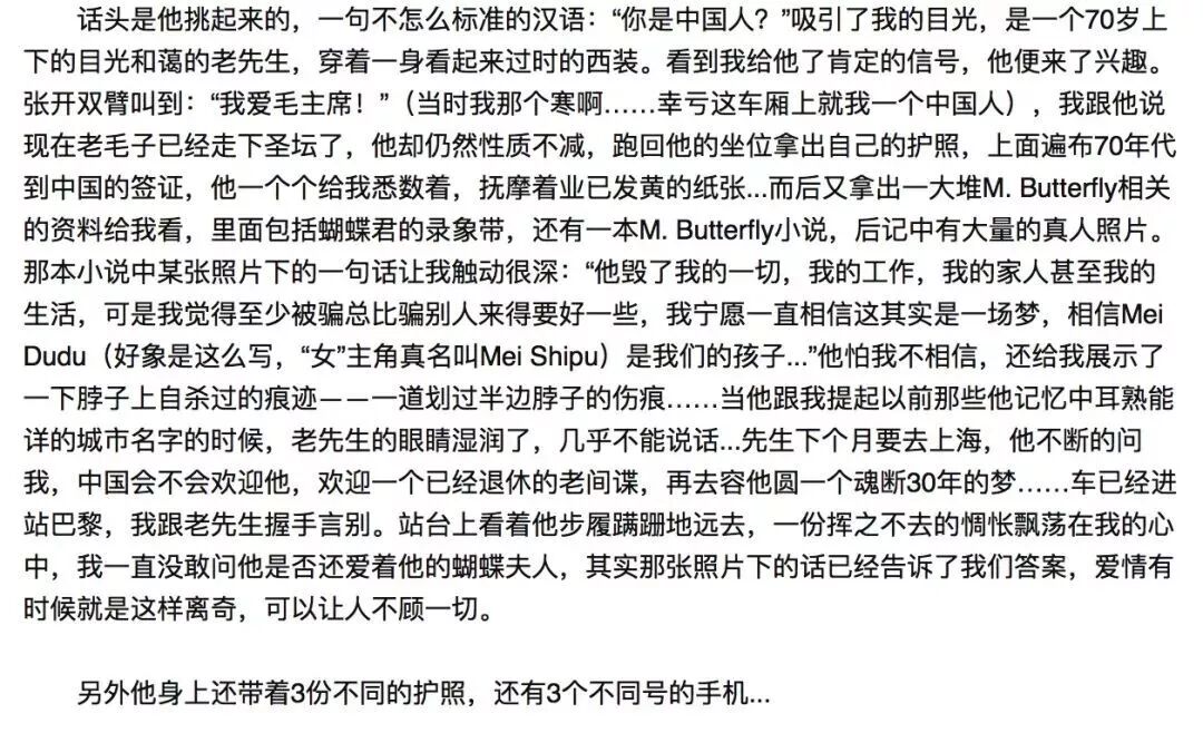 间谍,跨国婚姻,畸恋,这宗扑朔迷离的案子震惊了整个西方社会。剧情之荒诞离奇恐怕胆子再大的编剧都编不出来。这宗传奇的案件后来还被国外的导演改编成了戏剧和电影,名字叫《蝴蝶君》(没看过的朋友绝对值得一看!),在西方艺术圈引起了极大的轰动。都说人生如戏,而有时人生比戏剧更加跌宕起伏。