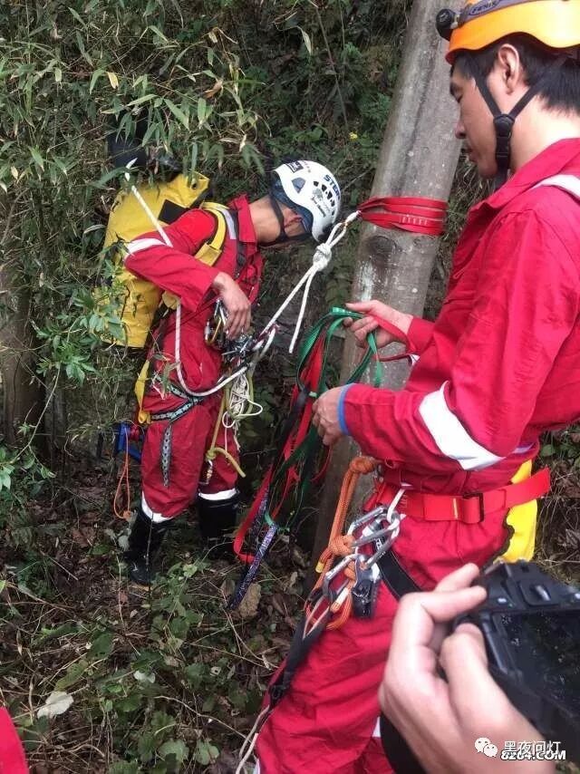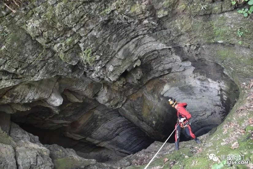 上午11点,全体队员到达竖井口,并开始打点设置下降路线。该竖井口宽近8米,深约70米,壁道光滑,有流水沿岩壁下淌。其形成与一至两百万年前第四纪冰川运动有关。为保证队员安全,由熟练的老队员带新队员下井,从探险队找到洞口、打点至全部队员完全进入竖井,已是夜幕。