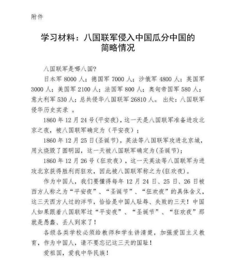 这两天,好友圈和微信群被“圣诞节八国联军侵华”的图片刷屏。太多人转发,吓我一跳。 *****
