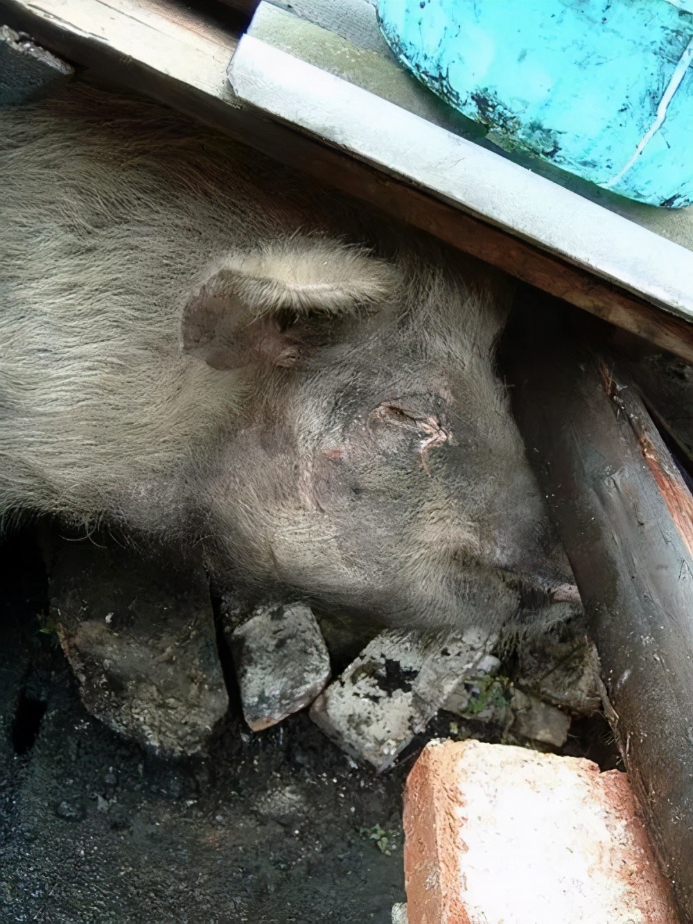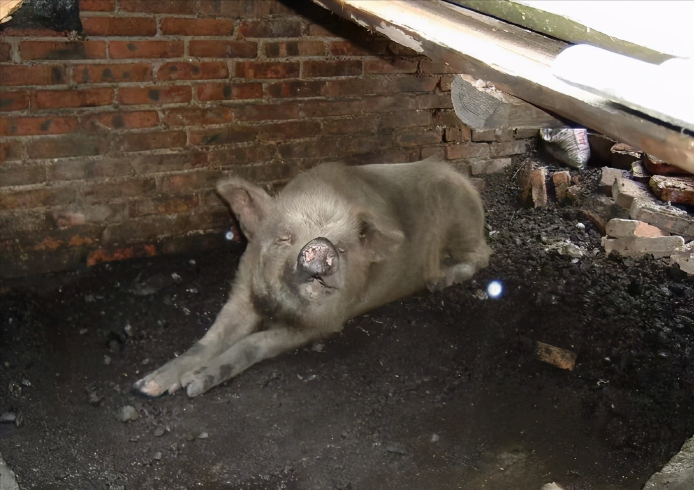过了一周多的时间后,万兴明回到了家中取东西。看了一眼自家已经被毁的猪圈,并没有什么动静,万兴明觉得就算当时侥幸活下来,这么多天了,这头猪可能也已经在废墟之下饿死了吧,便没有再关注。