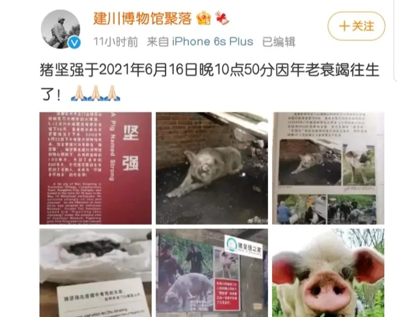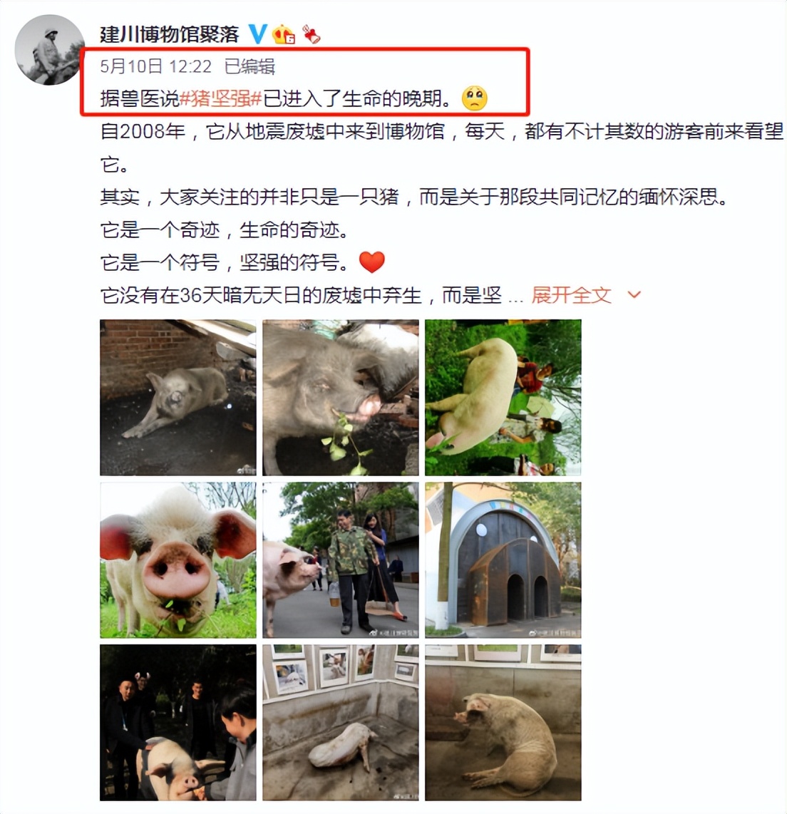 直到去年的5月份,建川博物馆的官方微博上多次声明了猪坚强的身体状况。称猪坚强的身体状况每天都在变差,即将走完自己的一生。这样的声明发出后,再次引起了网友们的强烈关注。