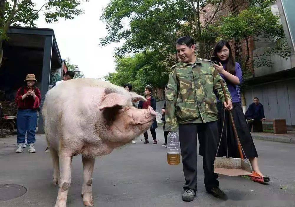 每天龚国成都会带着猪坚强一起出门遛弯,让猪坚强走路减肥。在坚持了一段时日之后,猪坚强的体重也在不停地往下掉,最终稳定在300多斤左右。