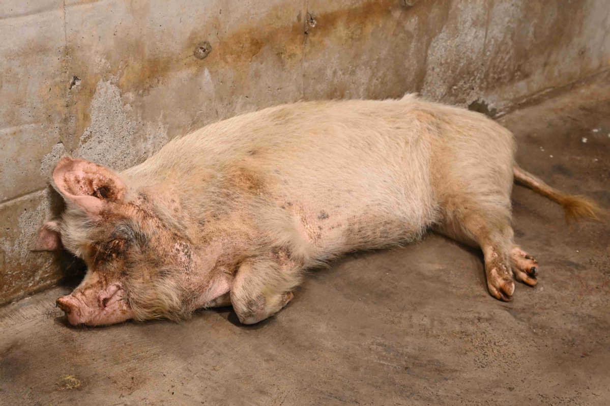 队员们加紧救援,将猪身上压着的东西全部搬走以后,发现这只猪已经瘦弱得不像样子了。浑身黑呼呼的。