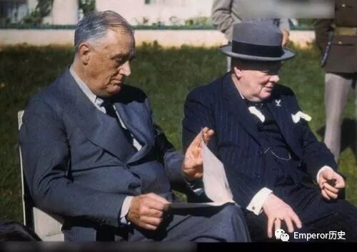 (图为美国总统罗斯福与英国首相丘吉尔的合照)