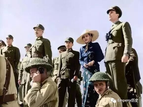(图为1943年12月,蒋介石、宋美龄夫妇在印度兰姆伽检阅中国驻印军,站在战壕上方从左至右分别为中国驻印军军长郑洞国、蒋介石、蒋纬国、宋美龄和盟军驻东南亚总司令蒙巴顿将军;蒋纬国此前已经在此基地训练多时,参与自行火泡的稳定器维护工作)