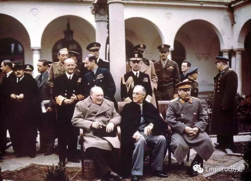 (图为雅尔塔会议期间,丘吉尔,罗斯福和斯大林的留影)