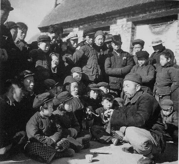 1955.山东文登 老人说书。