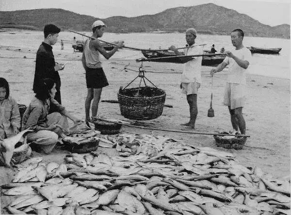 1954.山东威海 海边收购鲜鱼。
