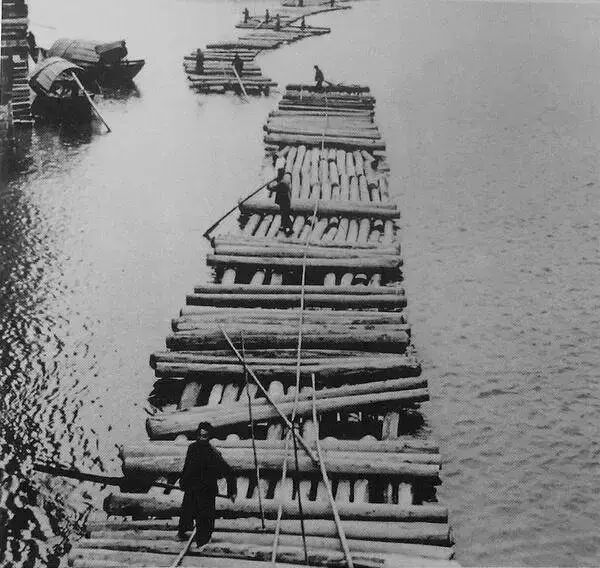 1954.福建 闽江木排。